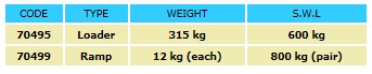 Χρησιμοποιείται για τη φόρτωση του ερπυστριοφόρου φορτωτή ή ως ράμπα πρόσβασης για οποιοδήποτε όχημα με ελαστικά ή ερπύστριες. Περιλαμβάνει γάντζο και πείρο ασφαλείας.