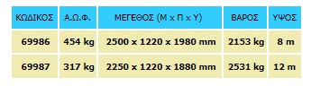 - Ύψος πλατφόρμας 8 m ή 9 m.