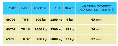 - Δυνατότητα επιλογής μεταξύ μοντέλων με Α.Ω.Φ. 800,1600 και 3200 kg.