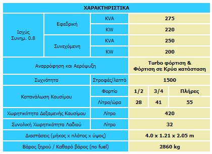 - Πλήρης εξοπλισμός με μεγάλη ποικιλία επιλογών και αξεσουάρ. Εγκιβωτισμένο Η/Ζ, με ηχομονωτικό περίβλημα και σε τρέϊλερ.