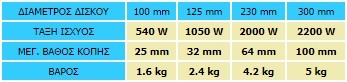 - Αρκετά ισχυρός ώστε να χρησιμοποιείται ως δισκοπρίονο απότμησης.